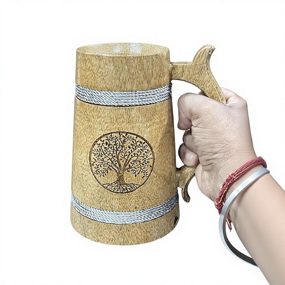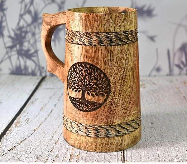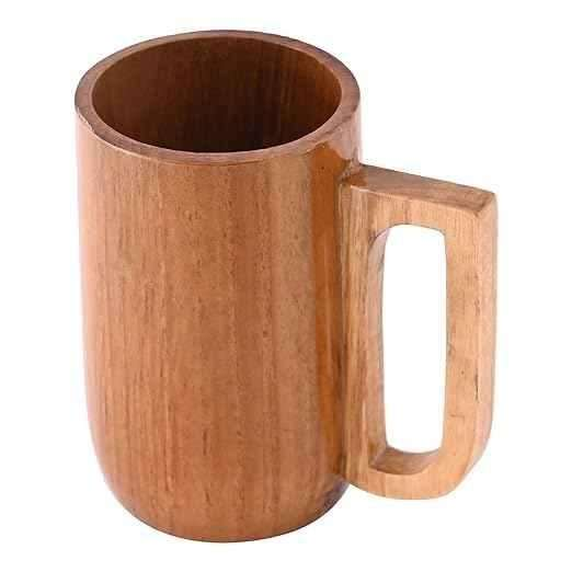 100% Natural Wooden Classic Mug with Floral Pattern Microwave Safe Hand Grip Disposable for Coffee Tea & Hot Drinks