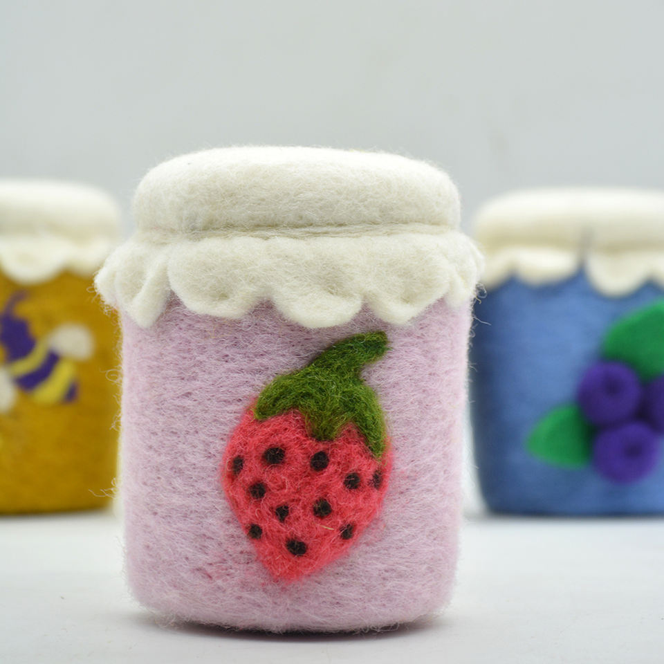 100% Natural Wool Felt Strawberry Jam - Handmade Play Food Toy | Kids Pretend Play Toy | Soft Toys