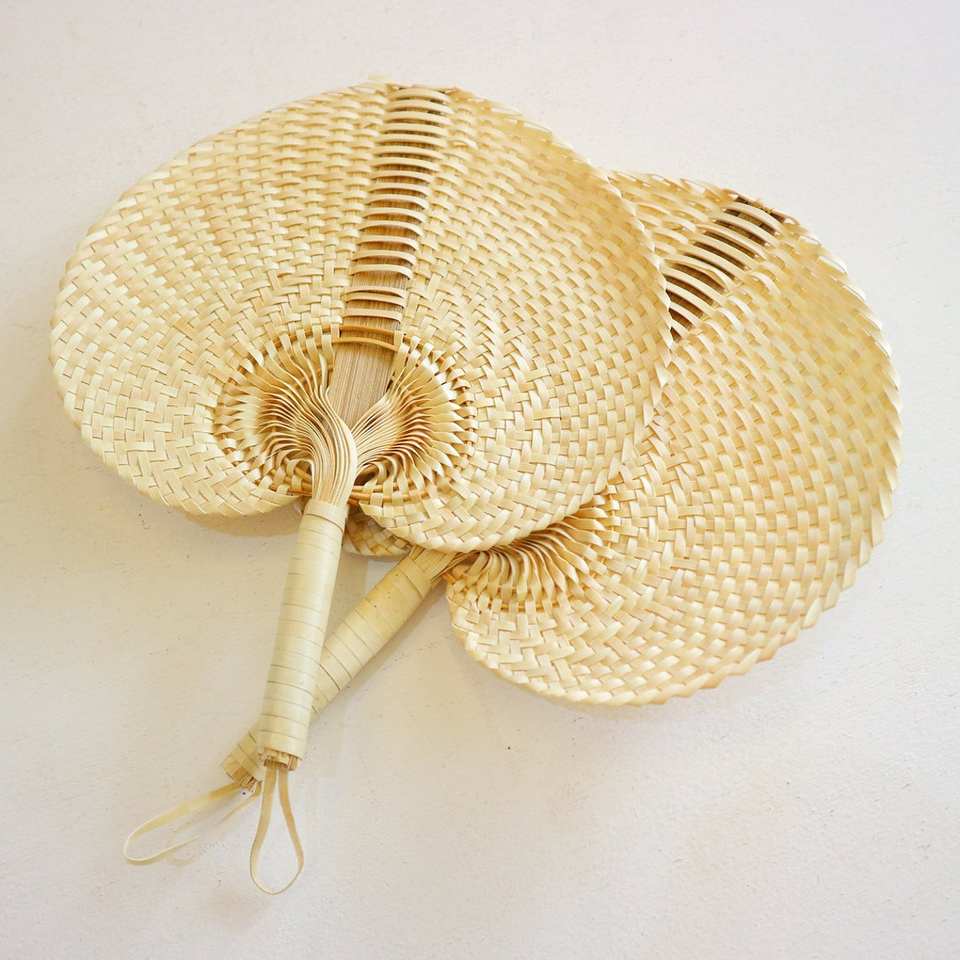 100% Natural Palm Leaf Raffia Handmade Braid Fans Hand Round Bamboo Wall Hanging Fan Decor
