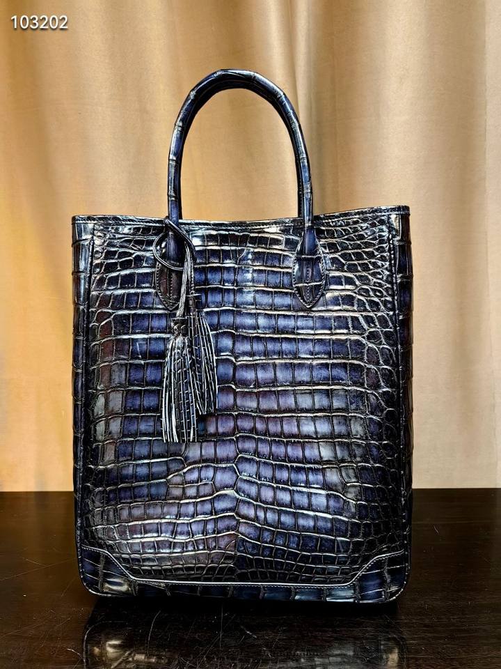 100% Nile crocodile genuine leather luxurious soft retro handbag designer fashionable large capacity women's men's handbag open