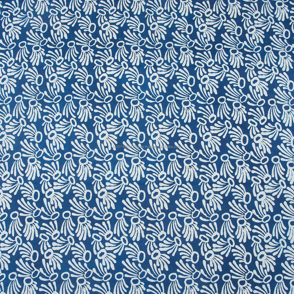 100% Organic Cotton Eco-Friendly 120gsm Combed Hand Block Print Indigo Color Woven Technique Dress Curtains Shirts Suits Covers