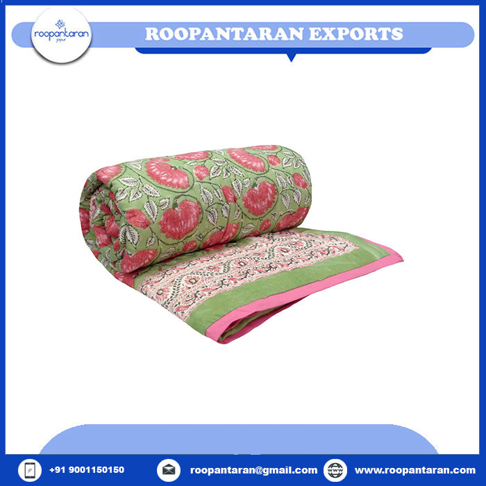 100% Organic Cotton Eco-friendly Bedding Quilt Set Traditional Woodblock Style Hand Block Printed Twin Size Quilt Bulk Hotel