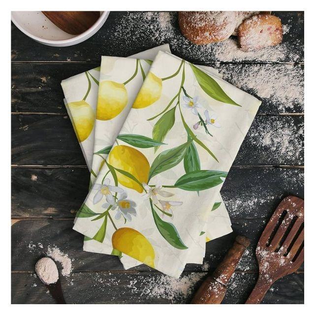 100% Organic Cotton GOTS Certified Kitchen Towels With Yellow Floral Leaf Digital Graphic Printed Moisture Wicking Dish Towels