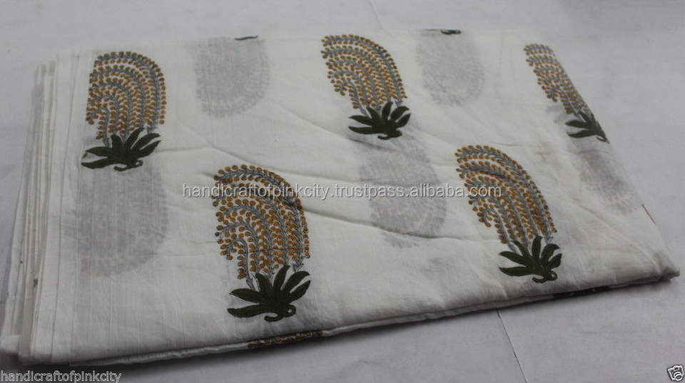 100% Organic Cotton Hand Block Printed Fabric Lightweight Woven Technics for Girls' Shirts and Suits for Boys' Dress As Well