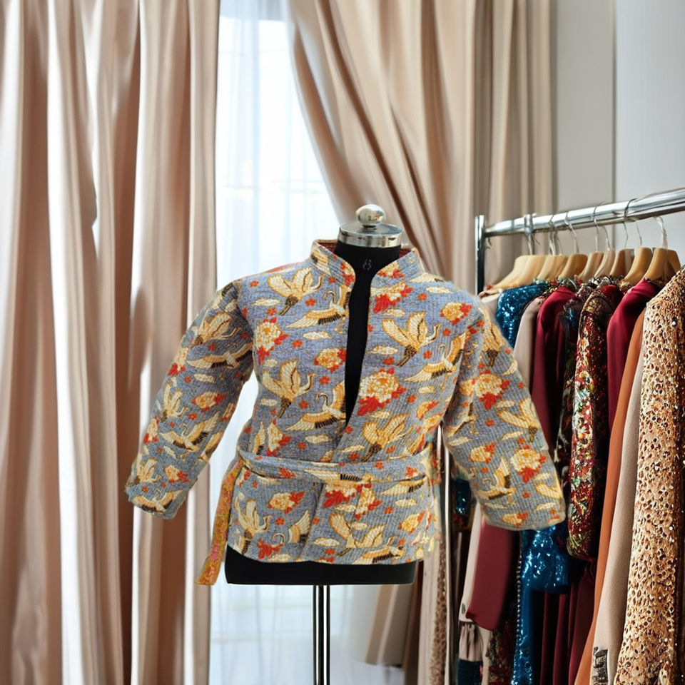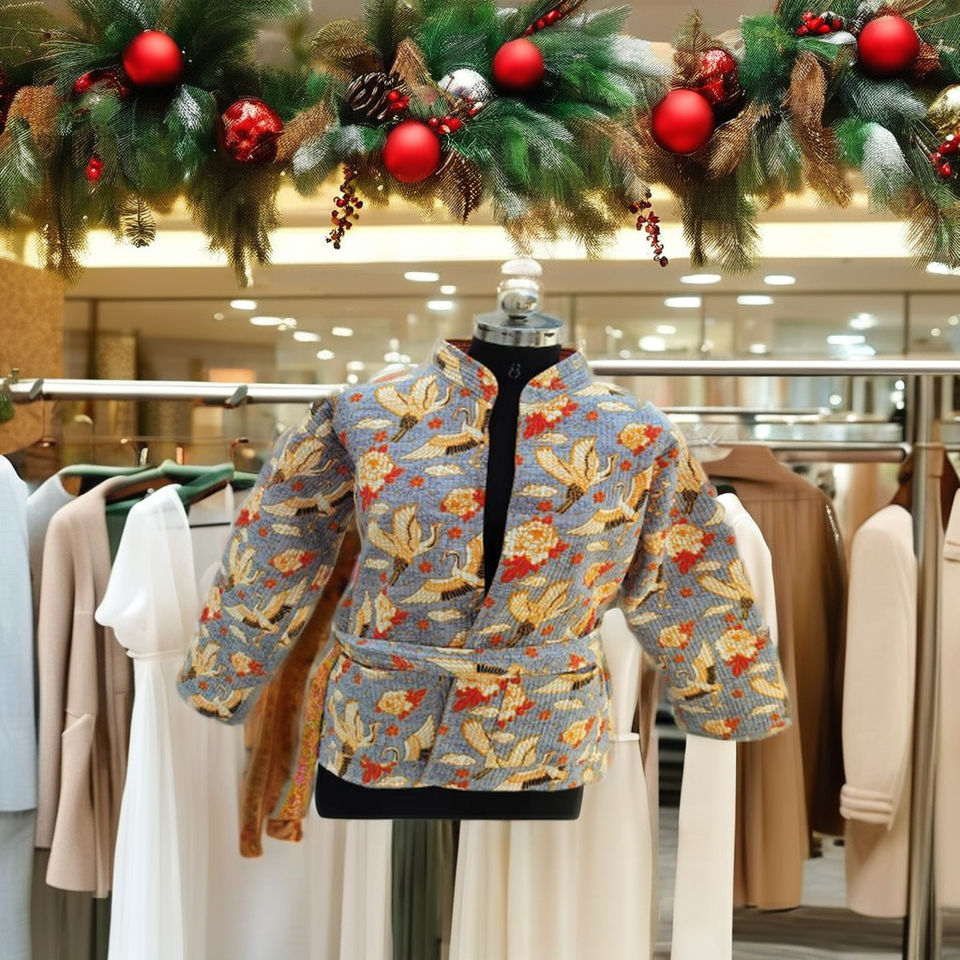 100% Organic Cotton Women's Short Ethnic Print Quilted Jacket Handmade Beach Wear Breathable Eco-Friendly Quick Autumn/Winter