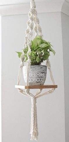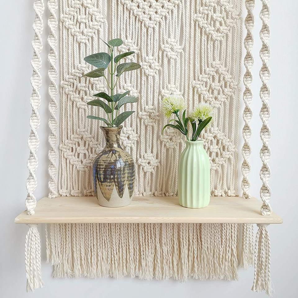 100% Organic Eco-Friendly Handmade Macrame Fabric New Year's Home Decor Wooden Shelf Hanger with Plant Hanger for Gift