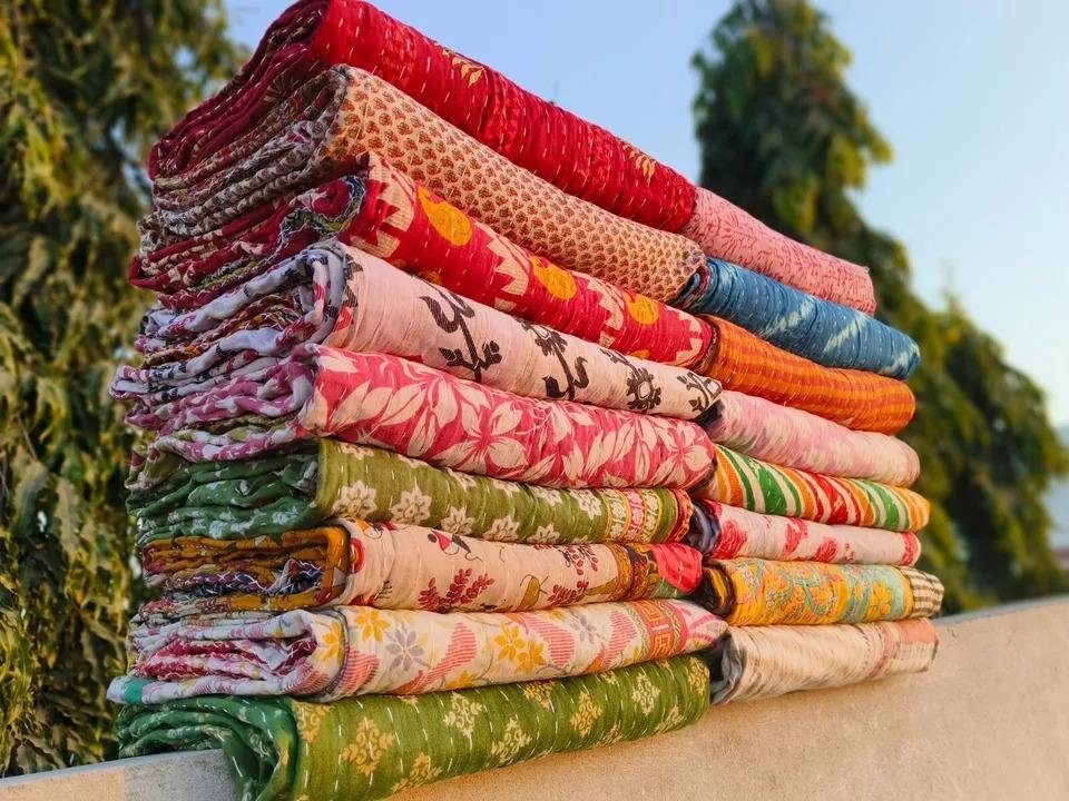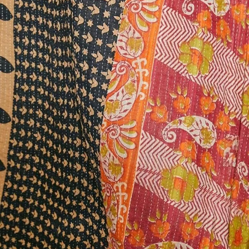 100% Organic Handmade Solid Pattern Kantha Cotton Quilt Soft Comfortable Modern 55*85 Inch Linen Throws India Quilt Blanket