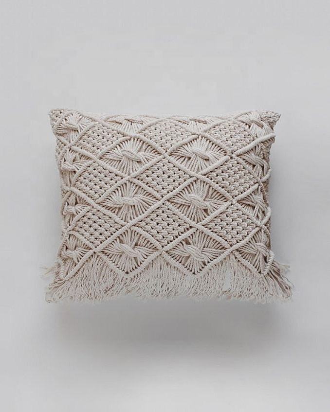 100% Organic Luxury Vintage Design Macrame Pillow Case Square Knitted Technique for Home and Hotel Use Natural Cushion Cover