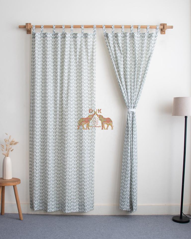 100% Organic Sanganeri Cotton Hand Block Printed Floral Wave Curtains Set for Home