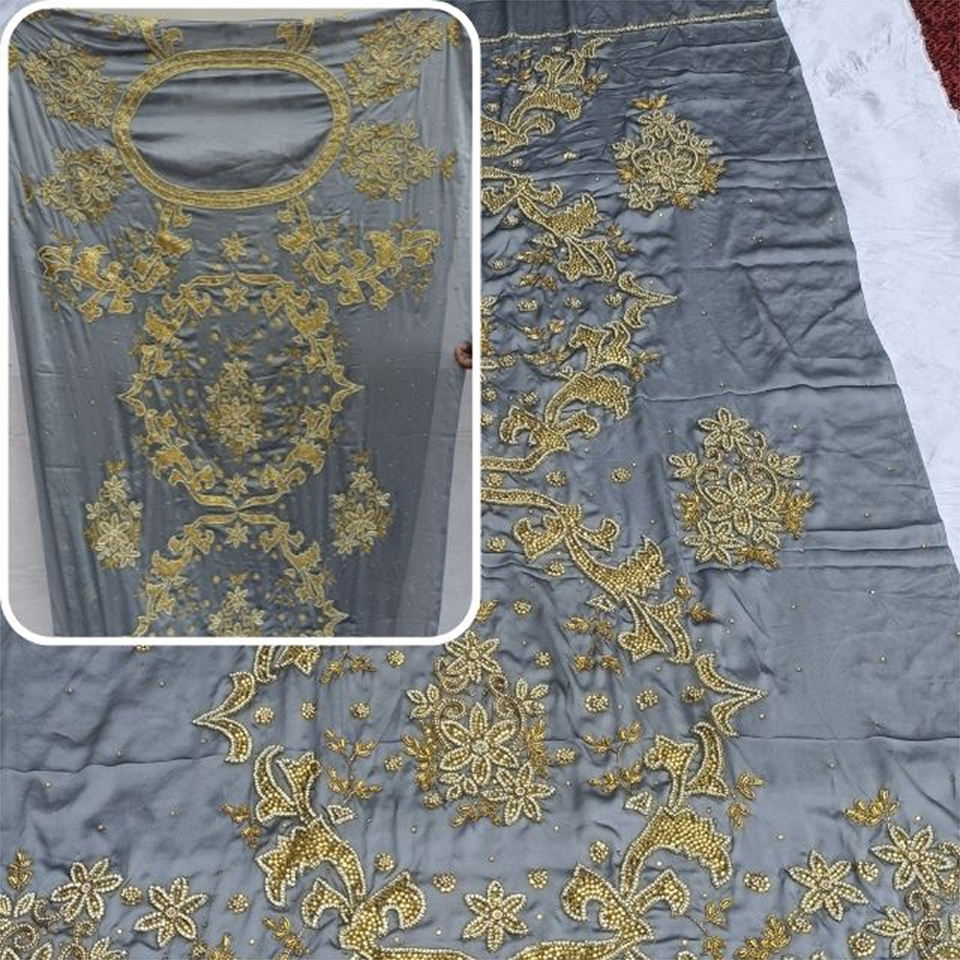 100% Organic Silk Satin Knitted Dress Full-Beaded Embroidered Somali Dirac Bridal Fabric for Weddings Sleepwear Costumes