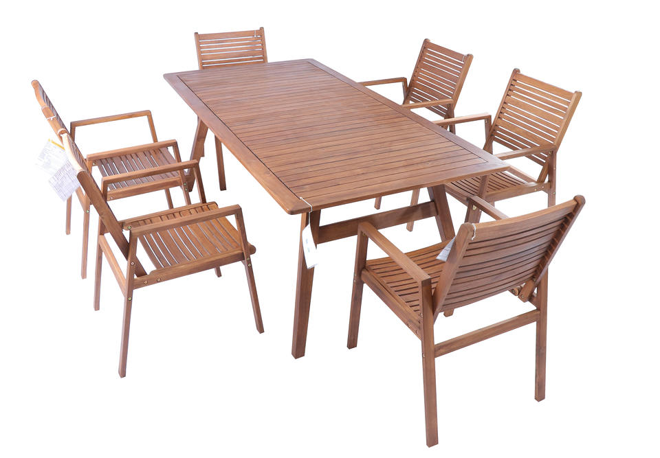 100% Origin Acacia Wood Outdoor Furniture Set Modern Design Wooden Table and 6pcs Lenshan Chairs for Restaurants