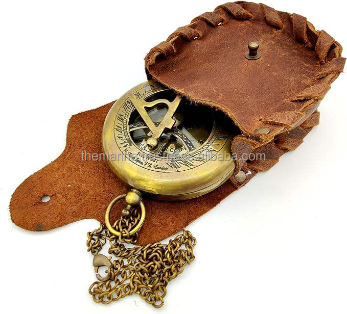 100% Original Brand New High Quality Handmade Nautical Solid Brass Antique Design Push Button Sundial Compass With Case.