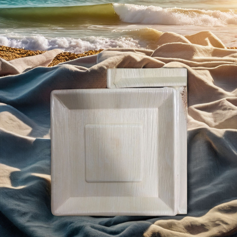 100-Pack Disposable Bamboo Palm Leaf Square Plate Dishes Eco-Friendly Biodegradable Compostable Plant for Camping Dessert