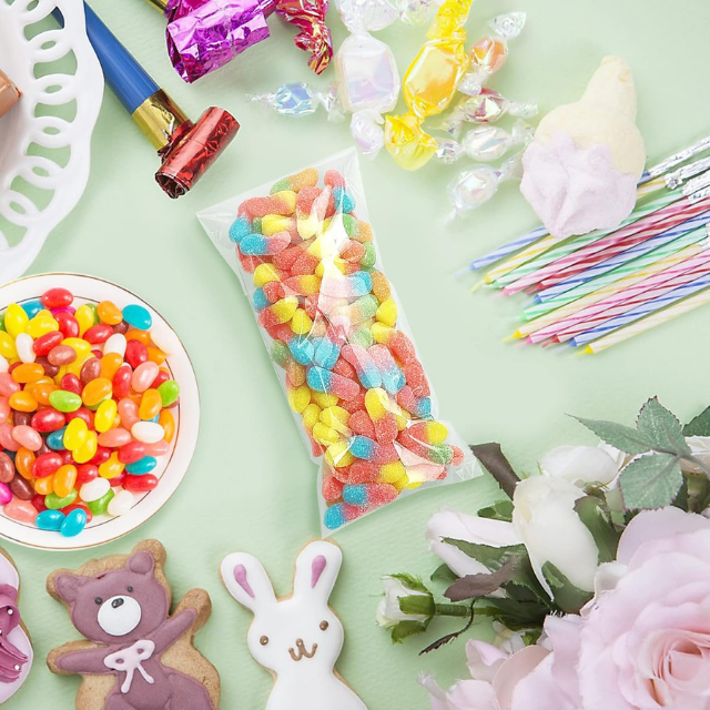 100 Pcs Custom Size Clear OPP Cellophane Biodegradable Self Adhesive Food Grade Plastic Bags for Clothing Food Photo Frame