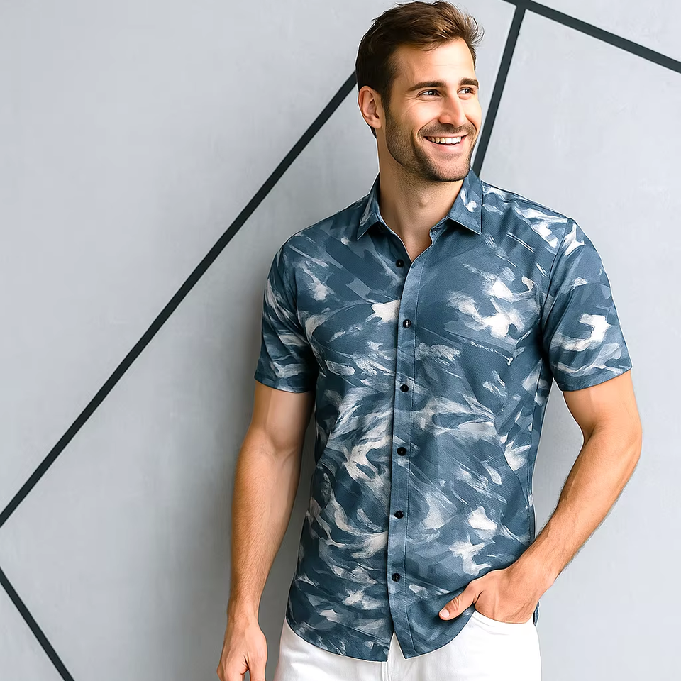 100 Percent Cotton Lightweight Short Sleeve Shirt Premium Casual Vintage Floral Print Anti-Wrinkle Mens Summer Shirt