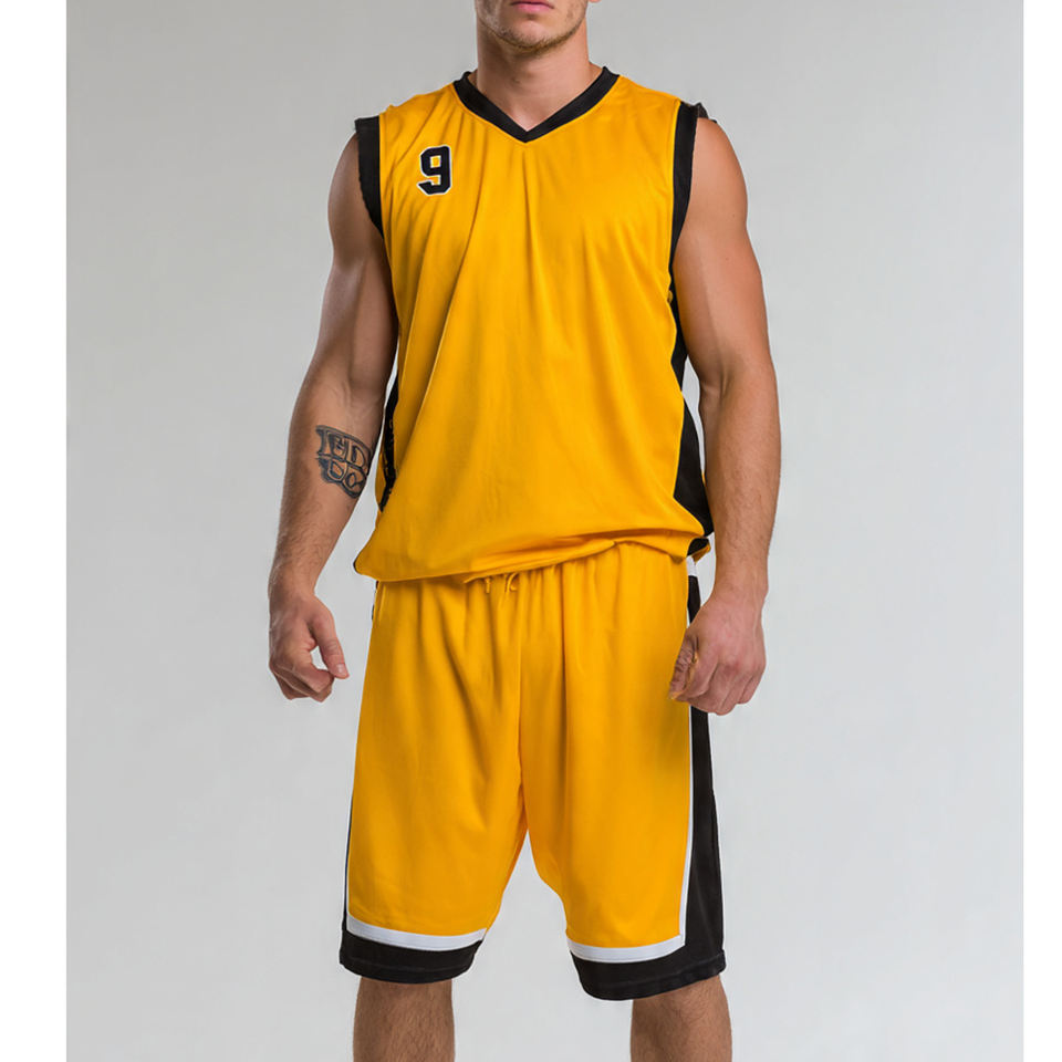 100% Polyester Basketball Uniform V Neck Sleeveless Basketball Jersey Top Sportswear Basket ball Shorts Set Men