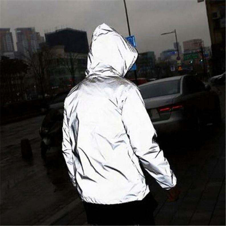 100% Polyester Coated Stand Collar Reflective Hood Zip OEM Custom Logo Wholesale 3M Windbreaker Mens Bomber Jacket