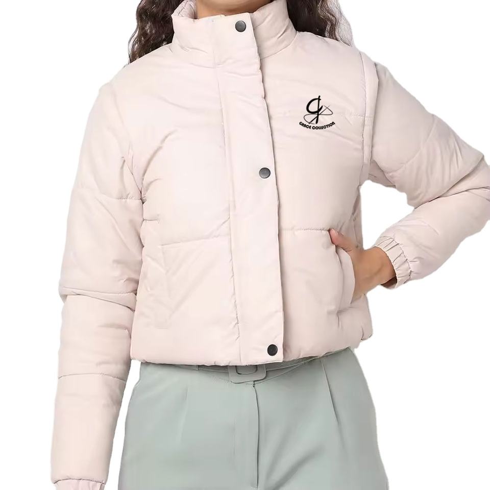 100% Polyester Full Zipper Elastic Cuff Short Length Puffer Jacket For Women Winter Wear With Private Label's