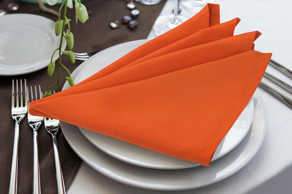 100% Polyester Orange Square Cloth Napkins 17 18 20 Inches Handmade Modern Style Washable Reusable Hemmed Edges for Parties
