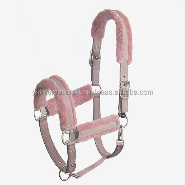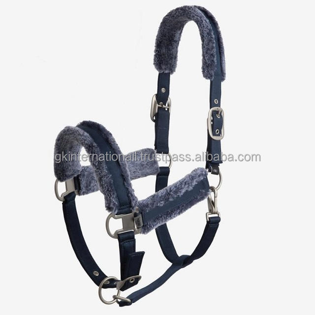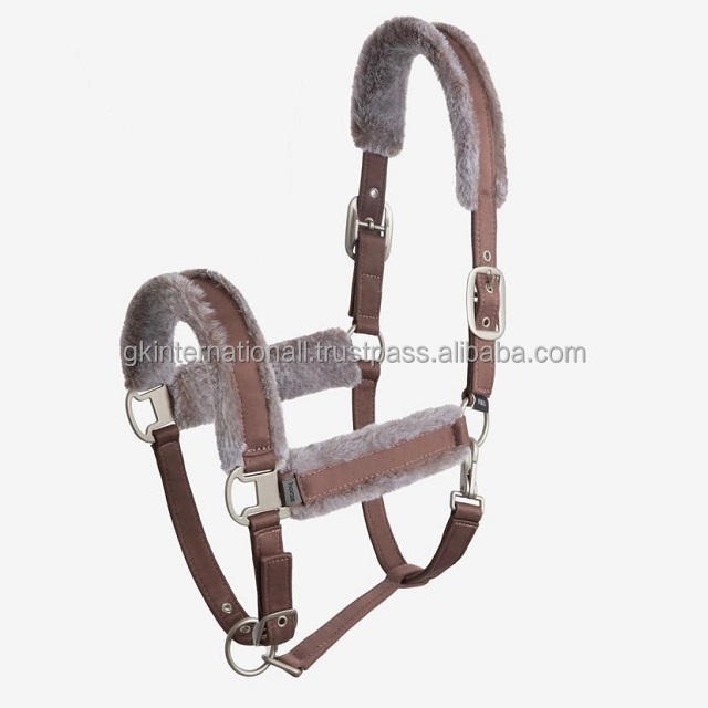 100% Polyester PVC Adjustable Horse Halter with Soft Faux Fur at Nose Cheeks and Crown Solid Brass Hardware