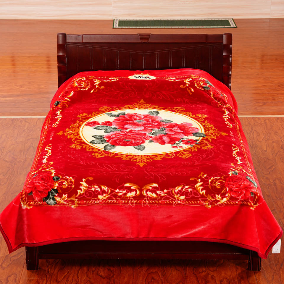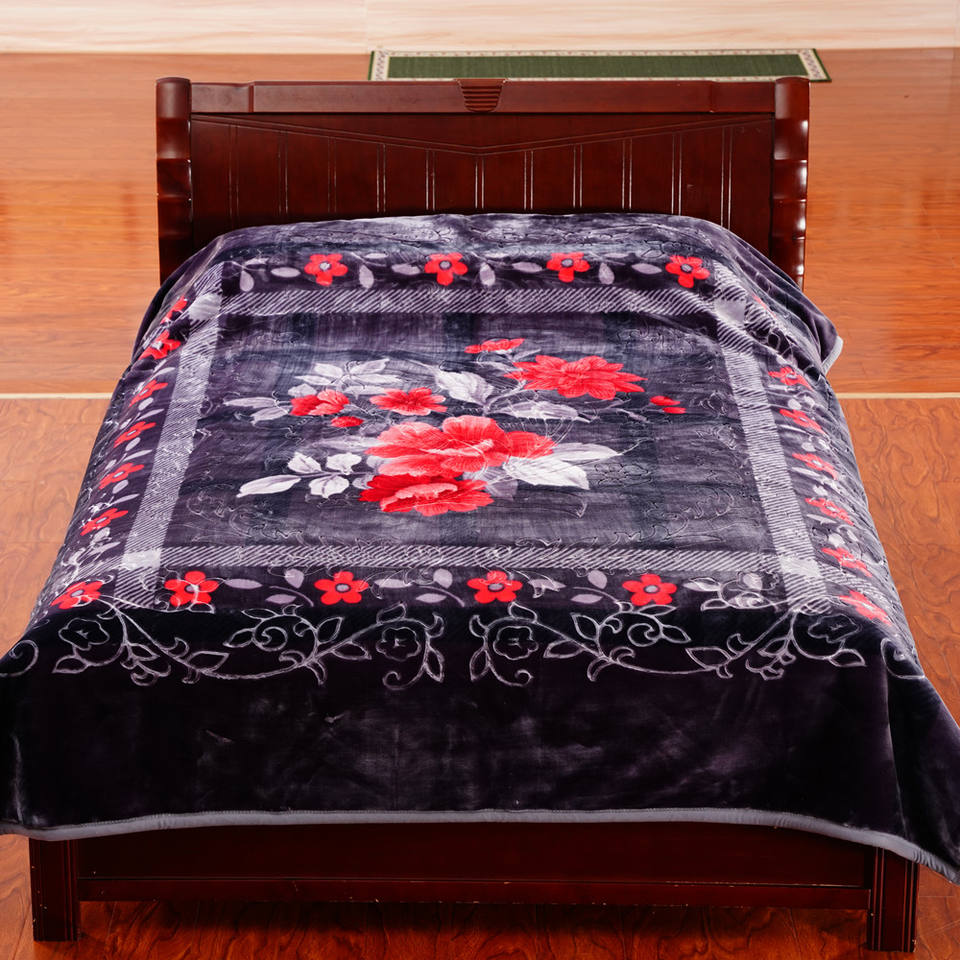 100% Polyester 2Ply Raschel Thick King Size Bedding Fleeced Printed Embroidered Korean Style Stylish Portable Knitted Blanket