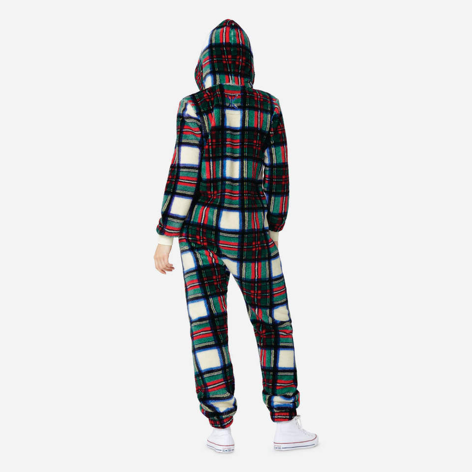 100% Polyester Soft & Stretchy Fleece Fabric Two Way Quality Zipper Unisex Checkered Red Puppy Jumpsuit