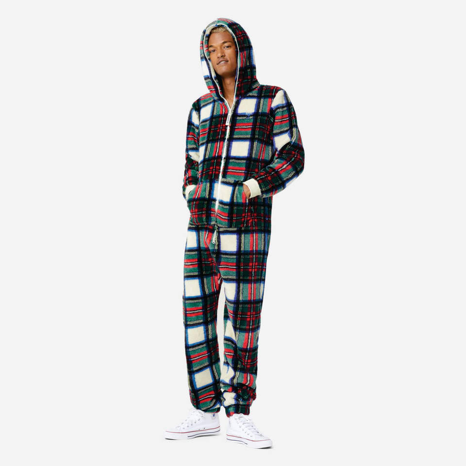 100% Polyester Soft & Stretchy Fleece Fabric Two Way Quality Zipper Unisex Checkered Red Puppy Jumpsuit cotton Breathable
