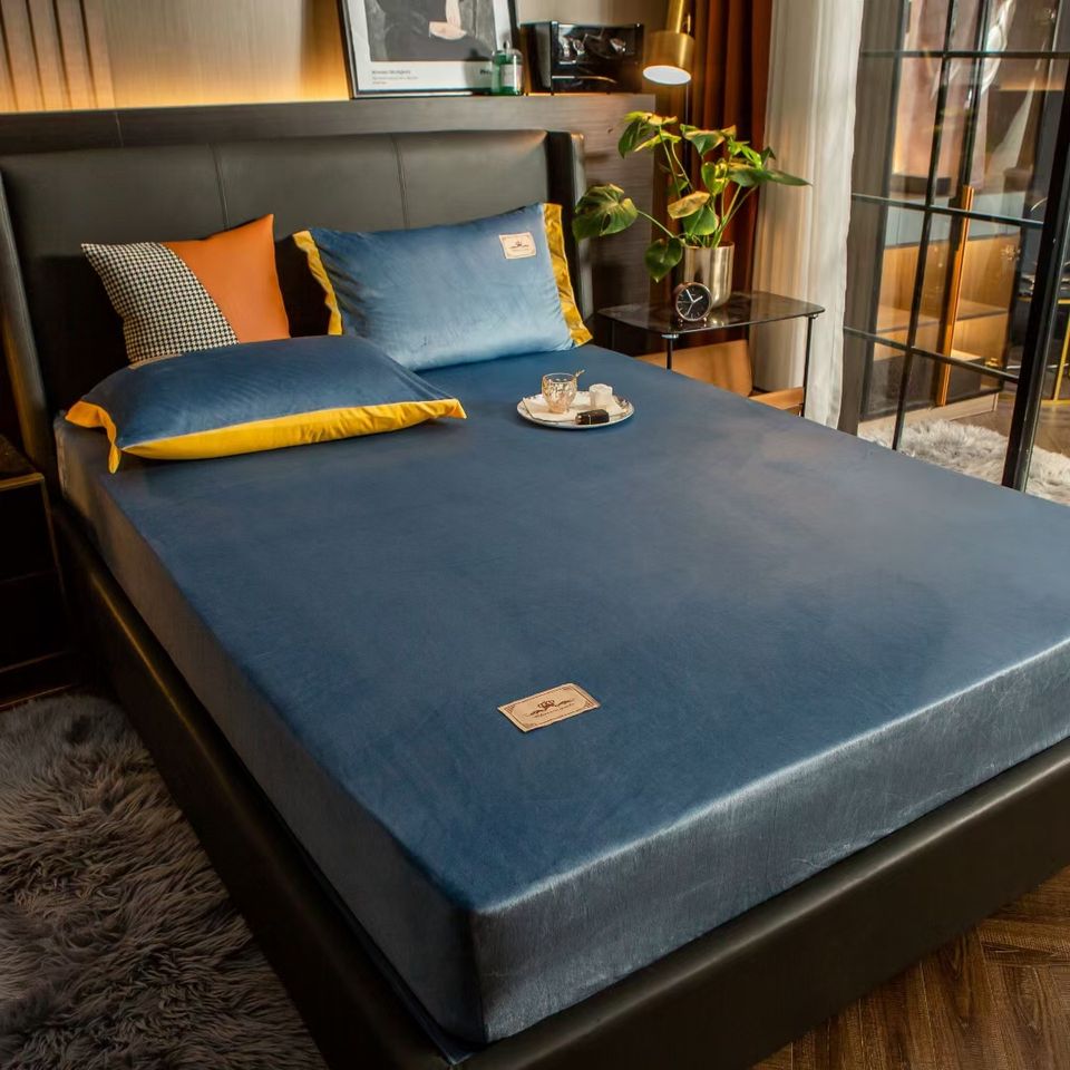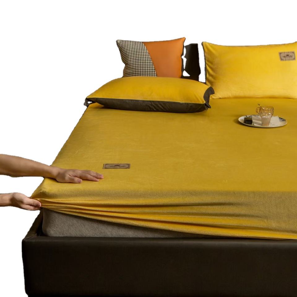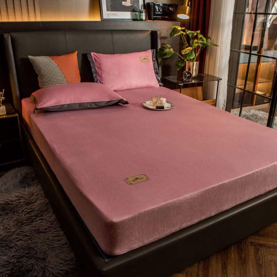 100% Polyester Soft Velvet Warm Fleece Waterproof Fitted Sheet Solid Minimalist Style Flannel Waterproof Mattress Cover