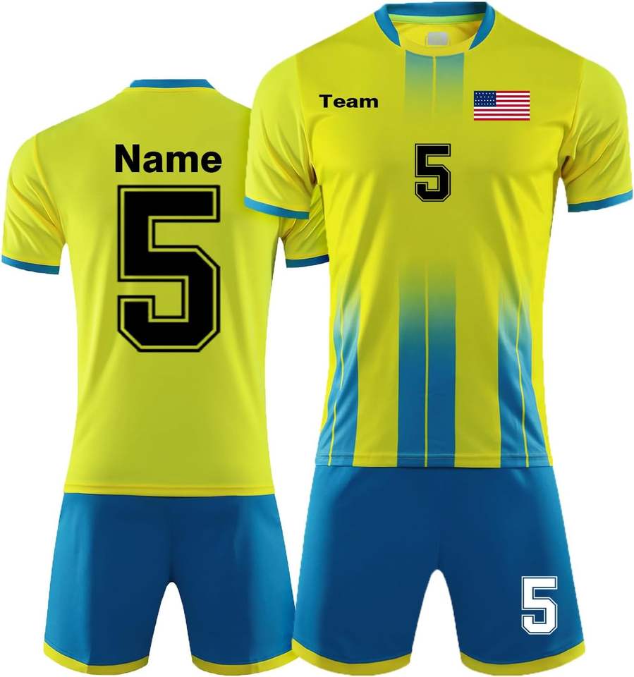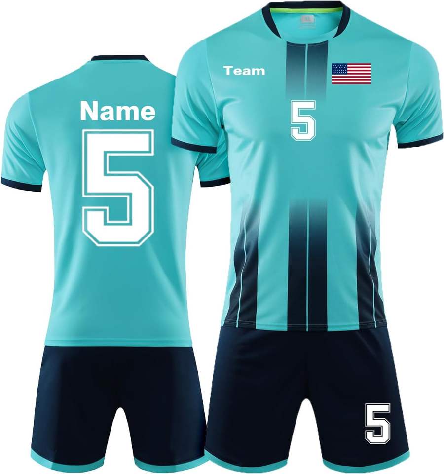 100% Polyester Summer Personalized Soccer Jerseys Unisex Custom Soccer Shirt and Shorts Sets with Name Number Logo