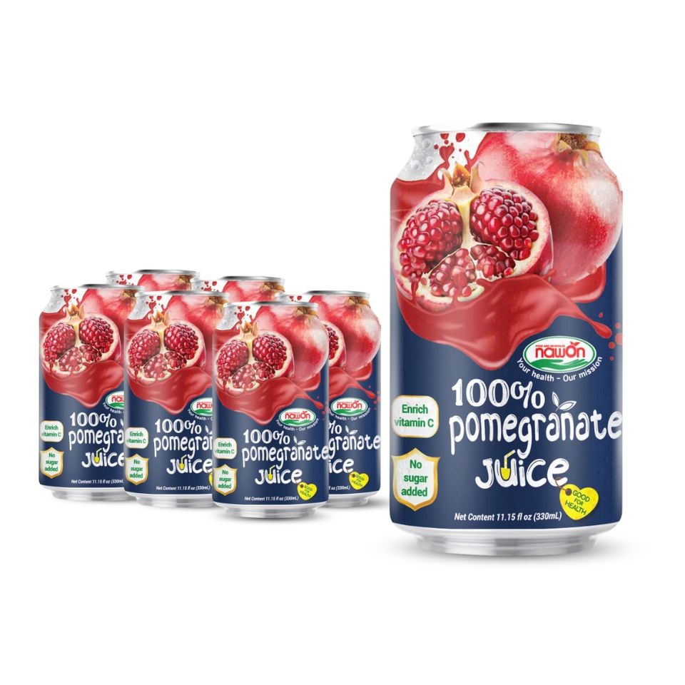 100% Pomegranate Juice Drink 330ML Canned natural Fruit Juice Nawon Vietnam Beverage Manufacture OEM Sample Provided