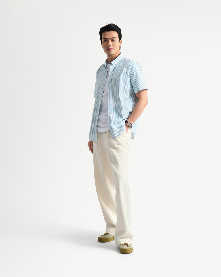 100% Premium Cotton Men's Casual Short-Sleeve Striped Shirt with Button Down Collar Autumn Fitted Style by Routine Vietnam