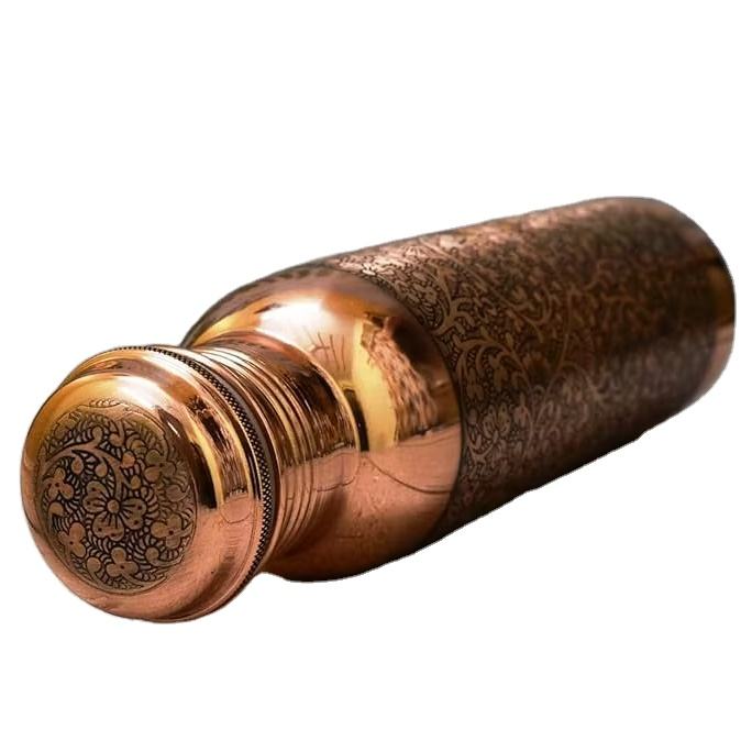 100% Pure Ayurvedic Benefited Hammered Copper Water Bottle Stylish Leak-Proof & Joint-Free Brass for Business Gifts
