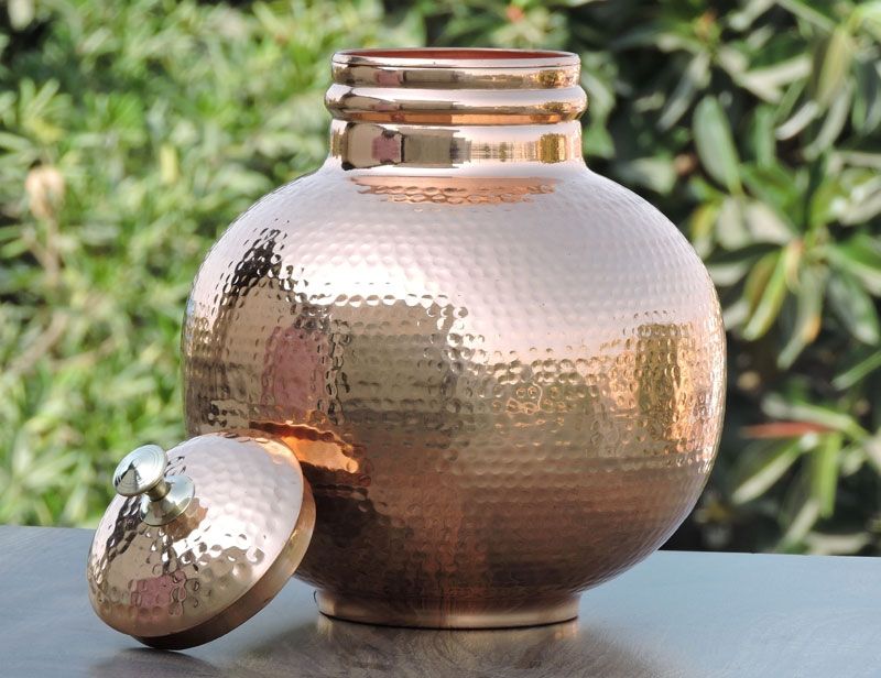100% Pure Ayurvedic Health Benefits 5-Litre Hammered Copper Dispenser Lid Anti-corrosion Coating Applicable Direct Drinking for
