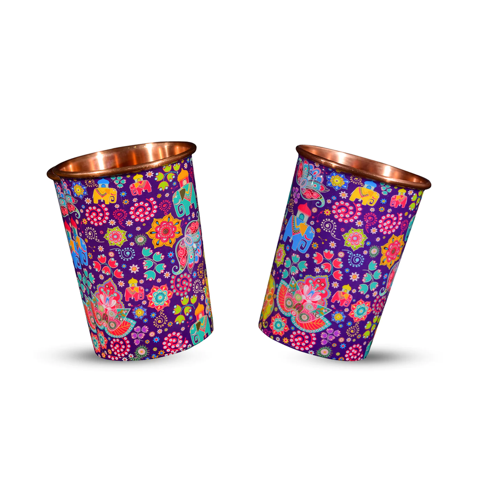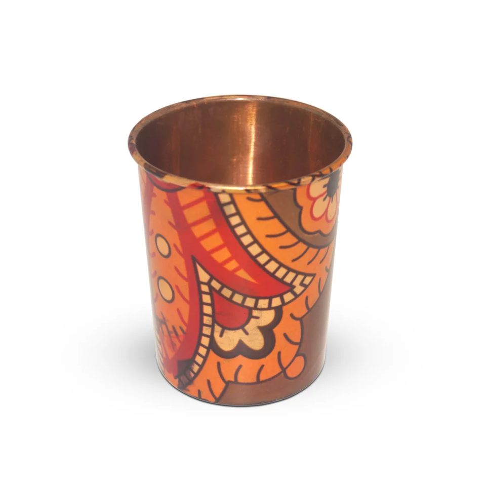 100% Pure Copper Drinking Water Glass for Home Hotel Restaurant of Printed Copper Glass Tumbler at Reasonable Rate