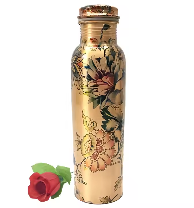 100% Pure Copper Hammered Water Bottle Eco-Friendly Sports Travel Friendly Ayurveda Benefit High Thermal Insulation Includes Lid