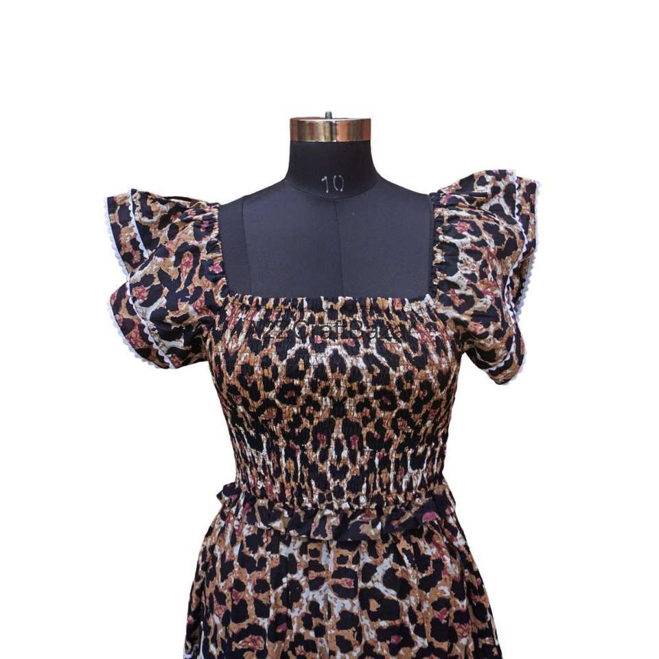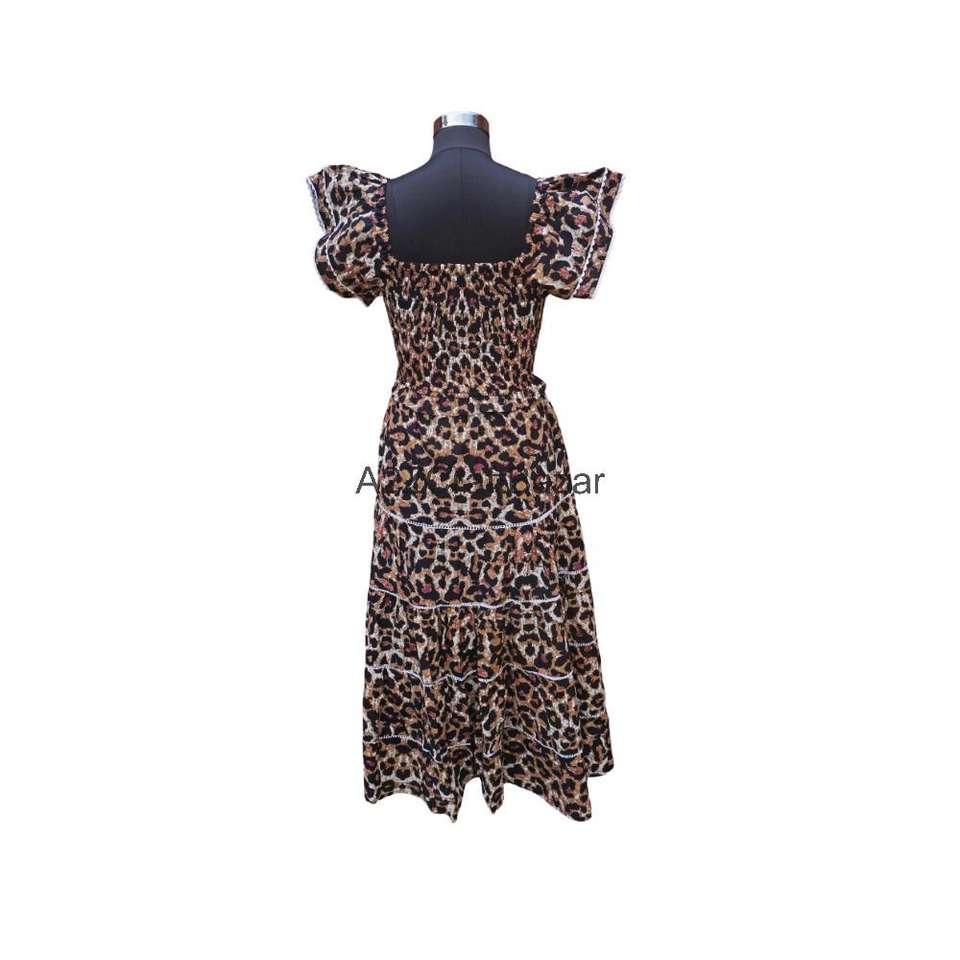 100% Pure Cotton Girls Casual Dress Handmade U-Neck Style Half-Sleeve Long Fitted Floral Print Breathable Daily Use Natural