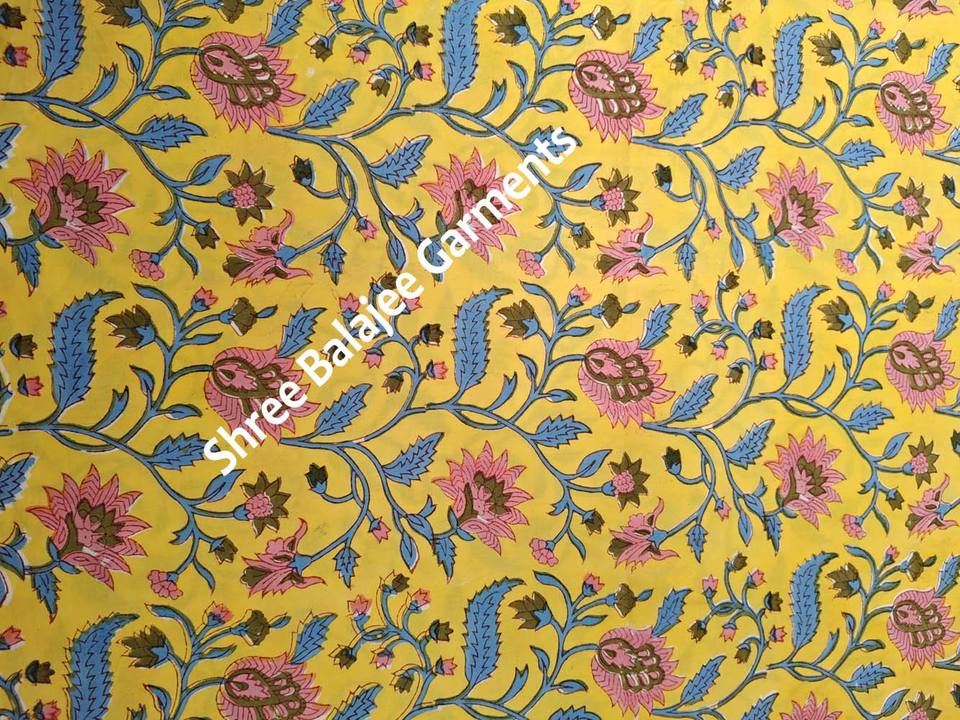 100% Pure Cotton Fabric Yellowish Blue Beautiful Indian Floral Hand Block Print for Women's Boys' Clothing Curtains Covers-for