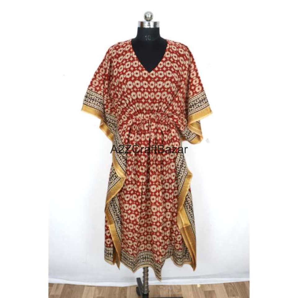 100% Pure Cotton Indian Floral Bodycon Kaftan Midi Dress with Sexy Style for Moms Summer Spring Beach Cover Sleepwear