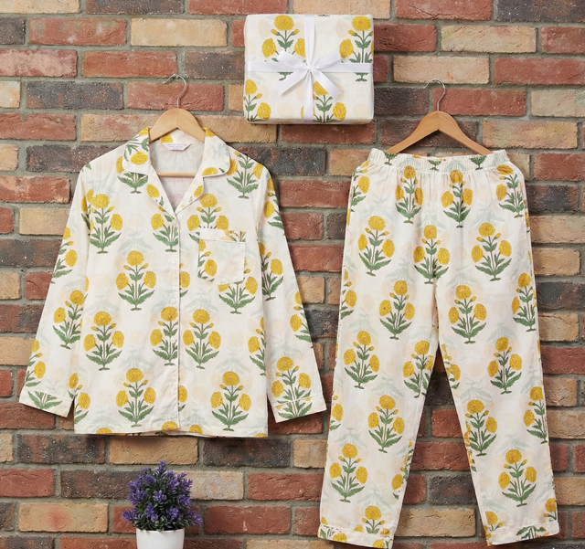 100% Pure Cotton Thermal Hand Drawn Printed Pajama Set for Women Indian Style Summer Sleepwear Bridesmaid Bridal Party Spring
