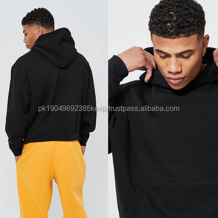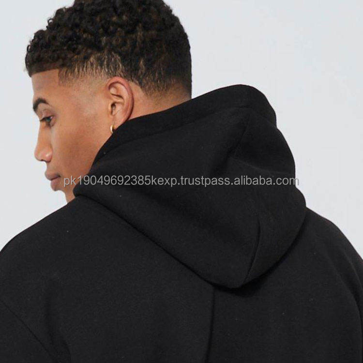 100% Quality Black 250 Gsm Heavy Weight Men's Hoodie Open Hem No Strings Embroidery Blank Puff Printing Cotton Autumn Hooded