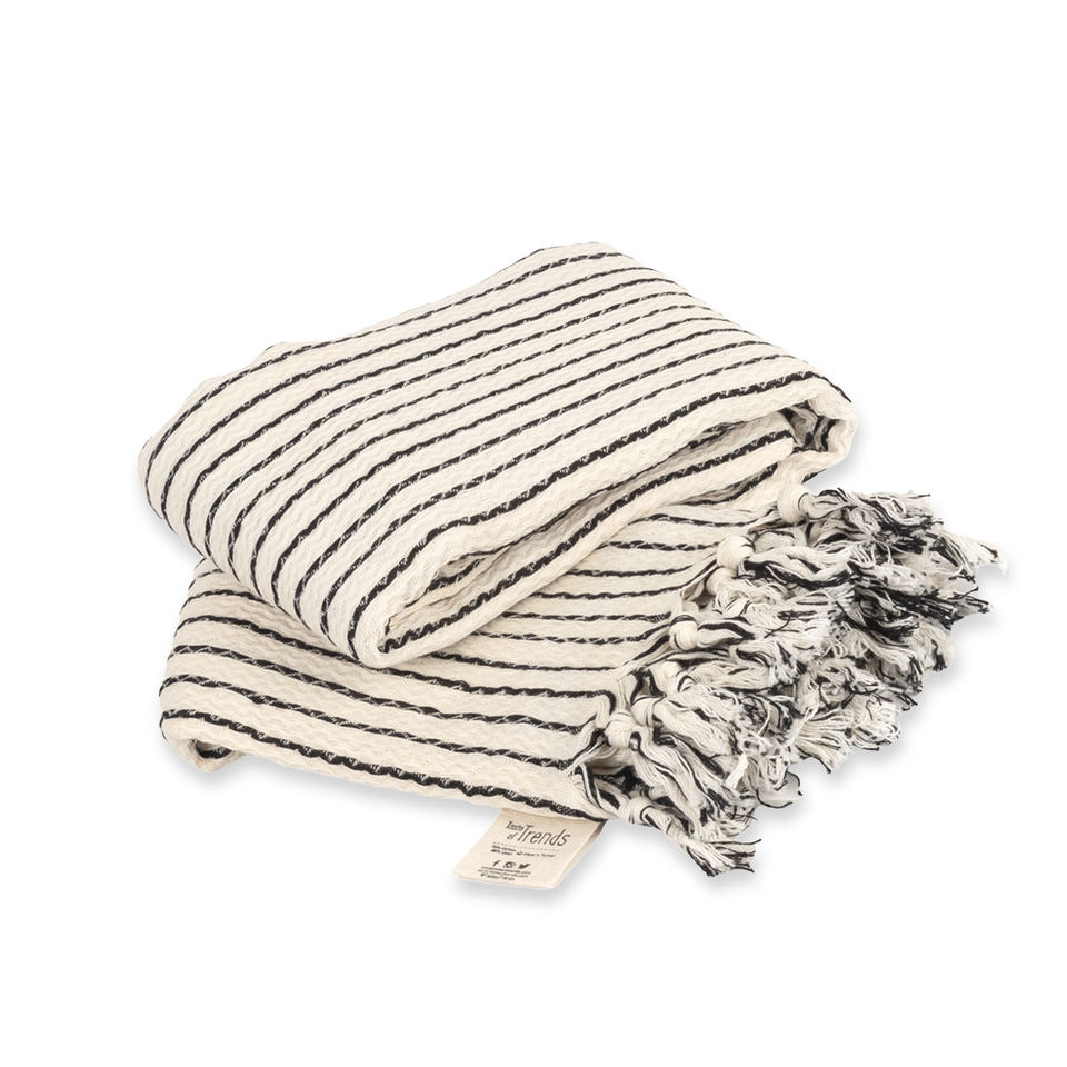 100% Raw Cotton Eco-Friendly Turkish Hammam Peshtemal Beach Towel Quick Dry Sand Free Breathable Striped Design Absorbent Soft