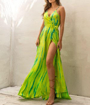 100% Rayon Vibrant Hand Made Tie-Dye Long Kimono for Women Lightweight Breathable Summer Dress Perfect for Beach and Resort Wear