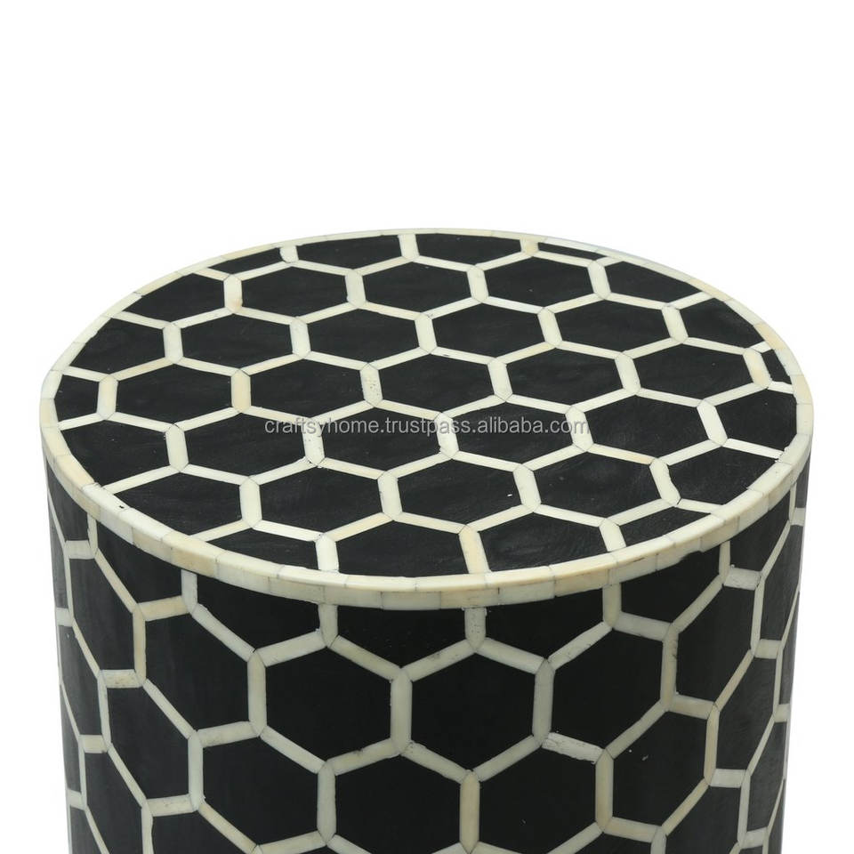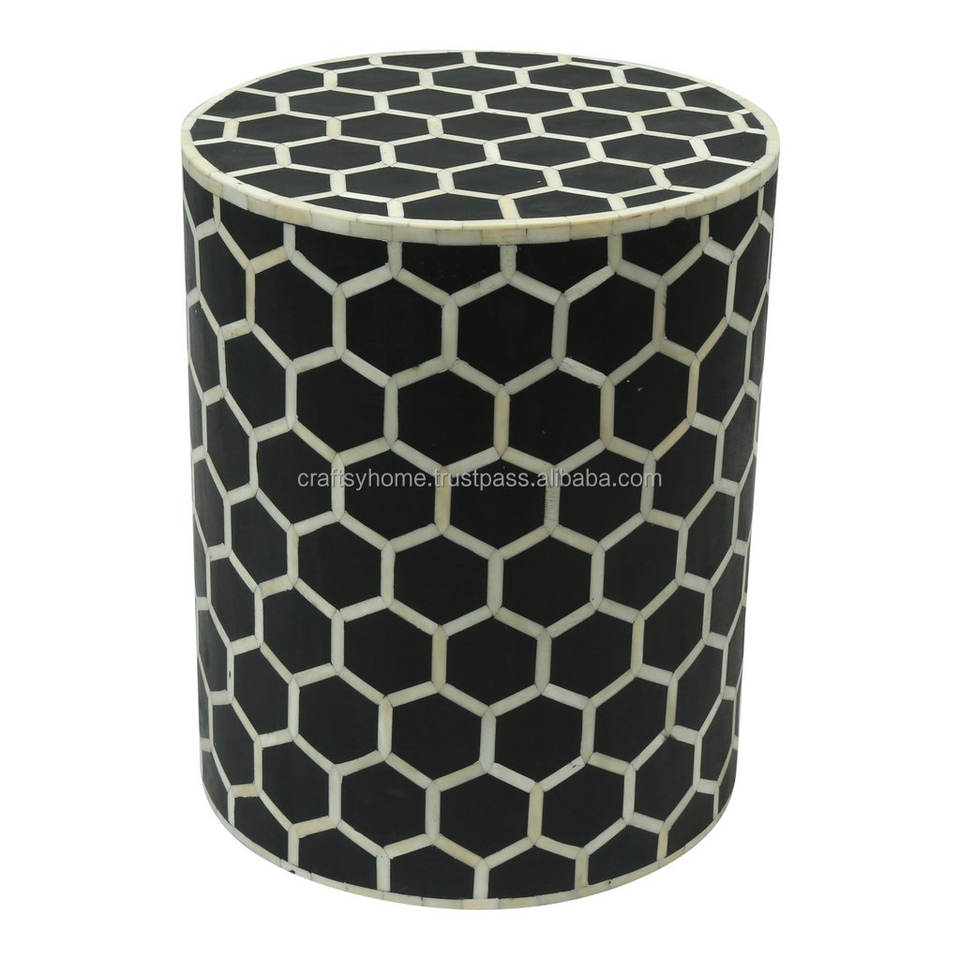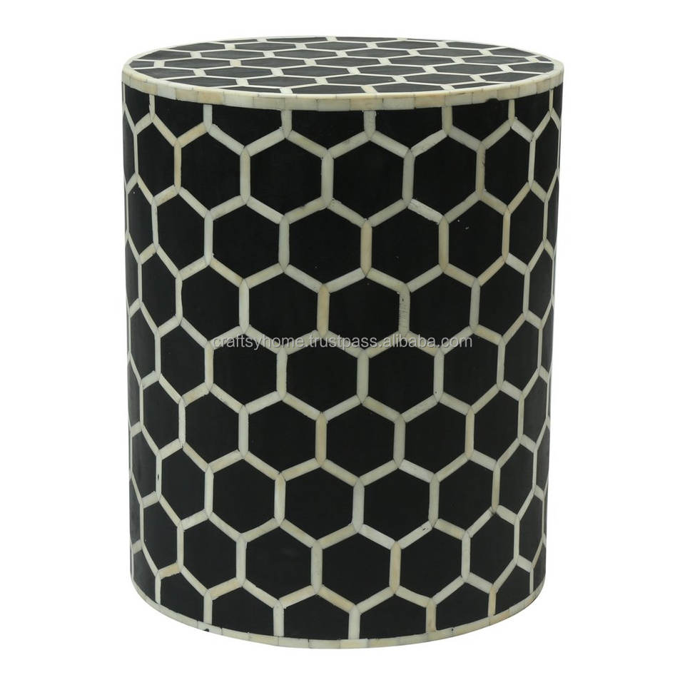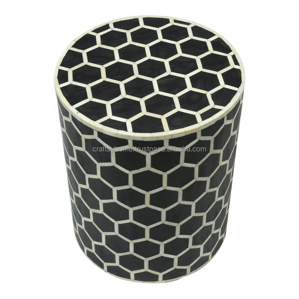 100% Real Bone Inlay Bedside Table Design Stool in Black Bone Inlay Side Table India for Living Room Furniture for home decor