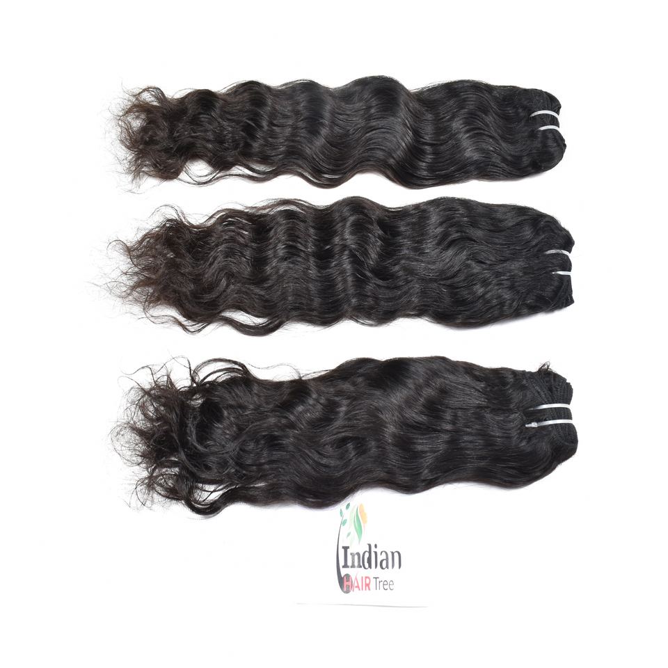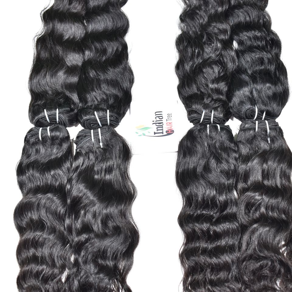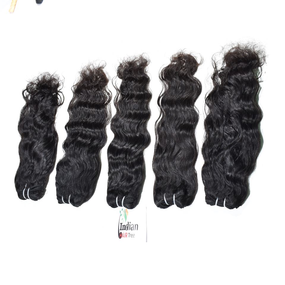 100% Remy Indian Temple Human Hair Bundles Wavy Manufactures Cheap Wholesale Price Natural Black Color Double Drawn Extensions