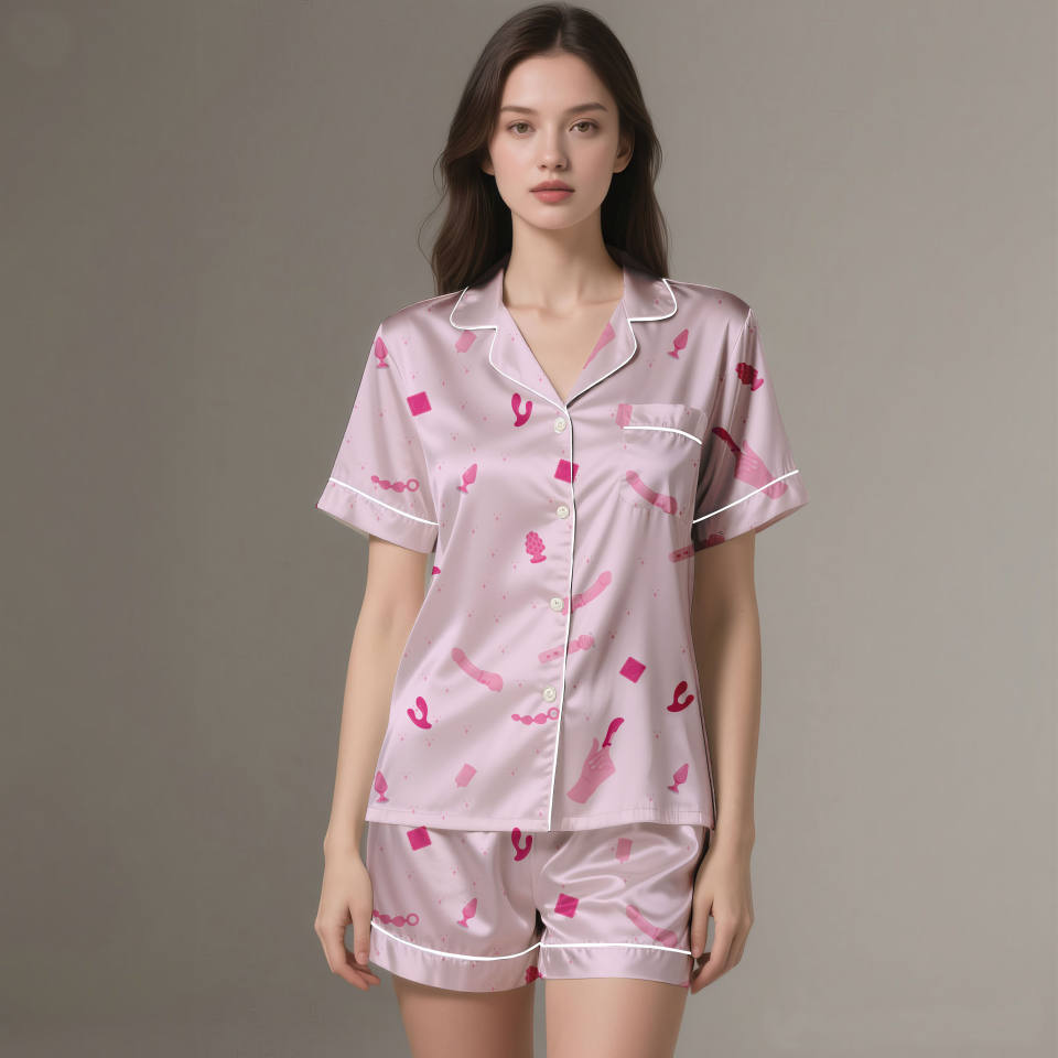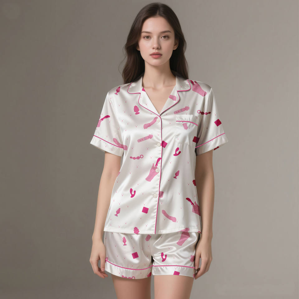 100% Silk Satin Pajamas Comfortable Breathable Heat Transfer Printing Sleepwear for All 120-150 GSM for Autumn Summer SpringPj's