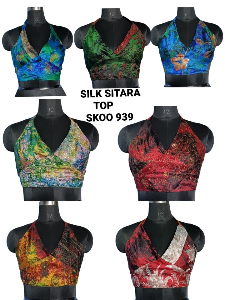 100% Silk Tie-Dye Top for Women Luxury Boho Vintage Style Short Length Embroidered Eco-Friendly Breathable Ethically Made