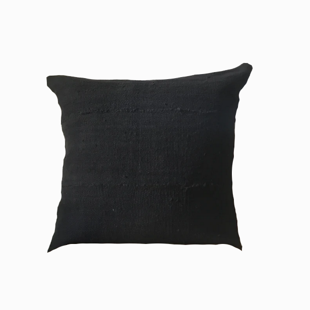 100% Slub Cotton African Mud Cloth Solid Black Square Cushion Cover Block Printed Leaves for Sofa Couch Outdoor Home Decor