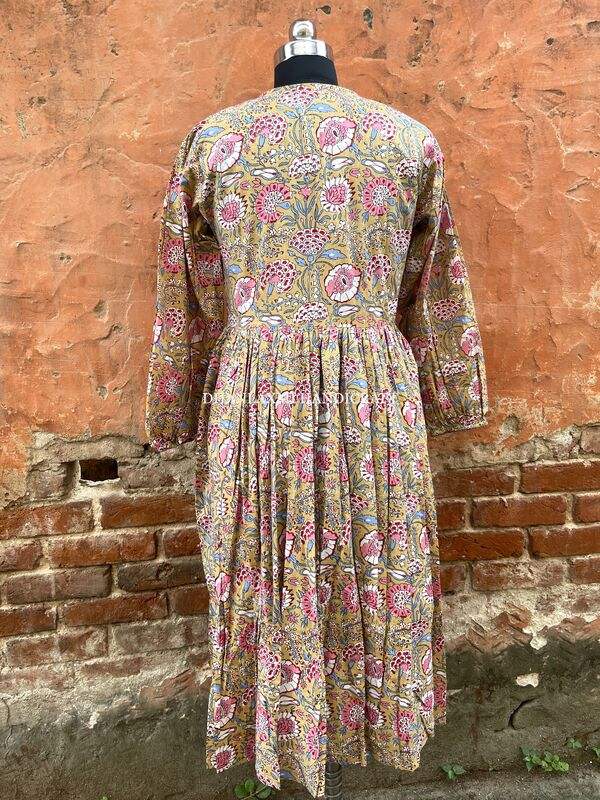 100% Soft Cotton Handmade Summer Dress Floral Hand-Block Printed Dress Midi Hippie Style Maxi Gown Boho Party Wear Dress