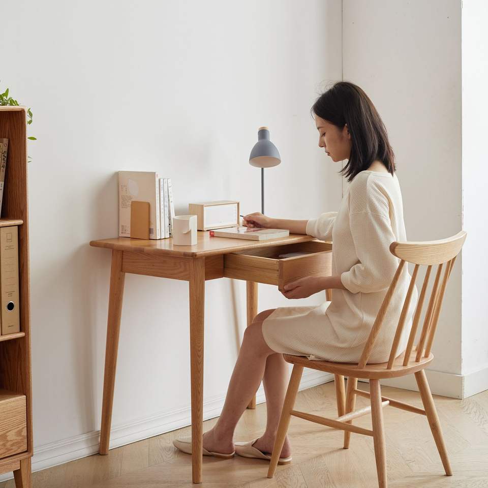 100% Solid Oak Natural Wood Computer Desk Simple Work Home Study Desk Slim 80 cm Width 50 cm Depth Wooden Grain Dressing Table