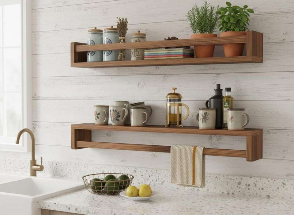 100% Solid Wood Floating Wall Shelf For Bathroom Livingroom Floating Rack Wall Mounted Partition Rack For Dinnerware Pot Storage